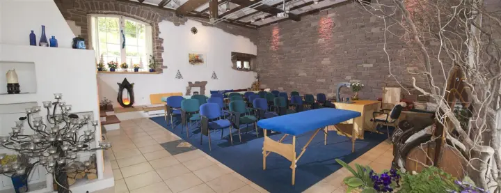 - Traumhaftes Ambiente im hauseigenen neuen „Seminarzentrum am Kohlhof“ mit zwei der schönsten Seminarräume Heidelbergs auf dem romantischen Kohlhof neben dem Kurpark der Rehaklinik Königstuhl inmitten der Natur des beliebten Naherholungsgebietes oberhalb des Heidelberger Schloßes
